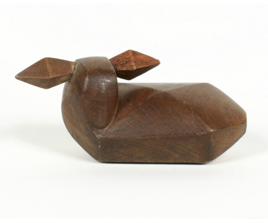 As a student of Ewald Mataré, Beuys created the sculpture Ohne Titel (Schaf) in 1948, carved from oak wood.