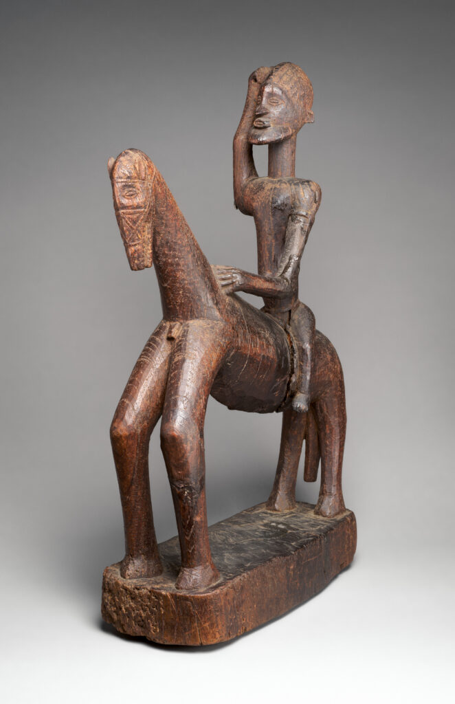 Dogon-sculpturen en maskers spelen een centrale rol bij rituelen rond voorouderverering en de dama‑dansen. Ze combineren abstracte en symbolische vormen met expressieve figuren van voorouders. Heel dynamische beelden zijn het, vooral wanneer mannen op een paard rijden met voorpoten als mensenbenen inclusief mannelijk geslacht.
